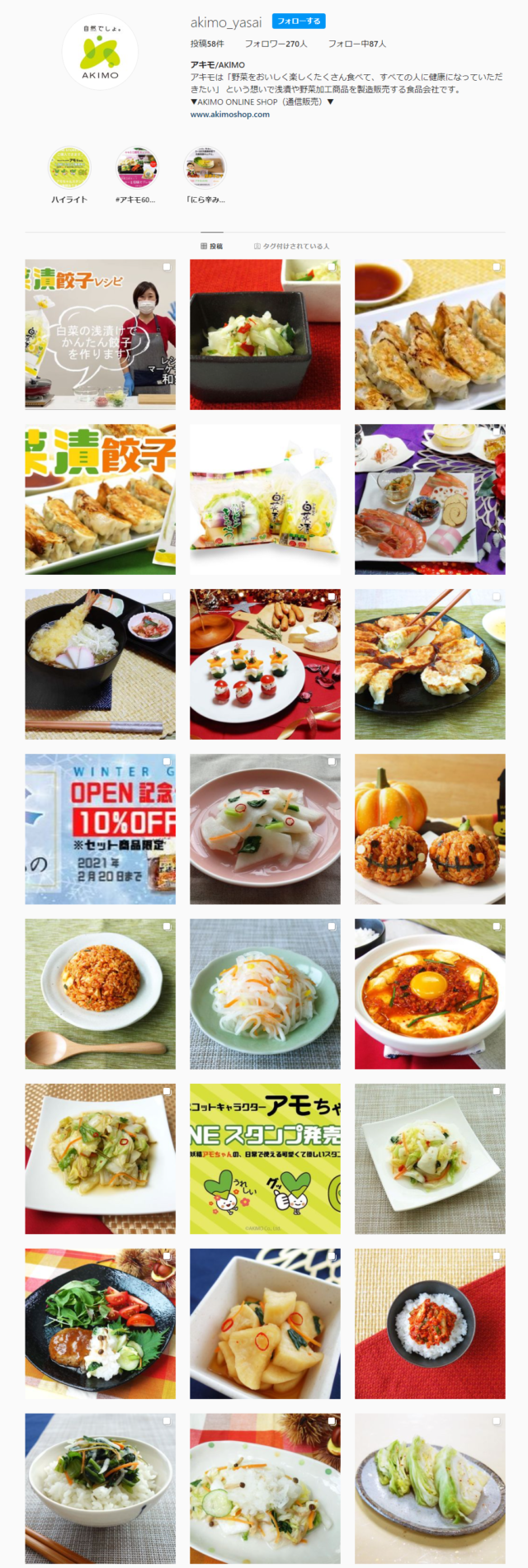 ■アキモ公式インスタグラム【akimo_yasai 】ページ(2021年1月19日12:50現在)