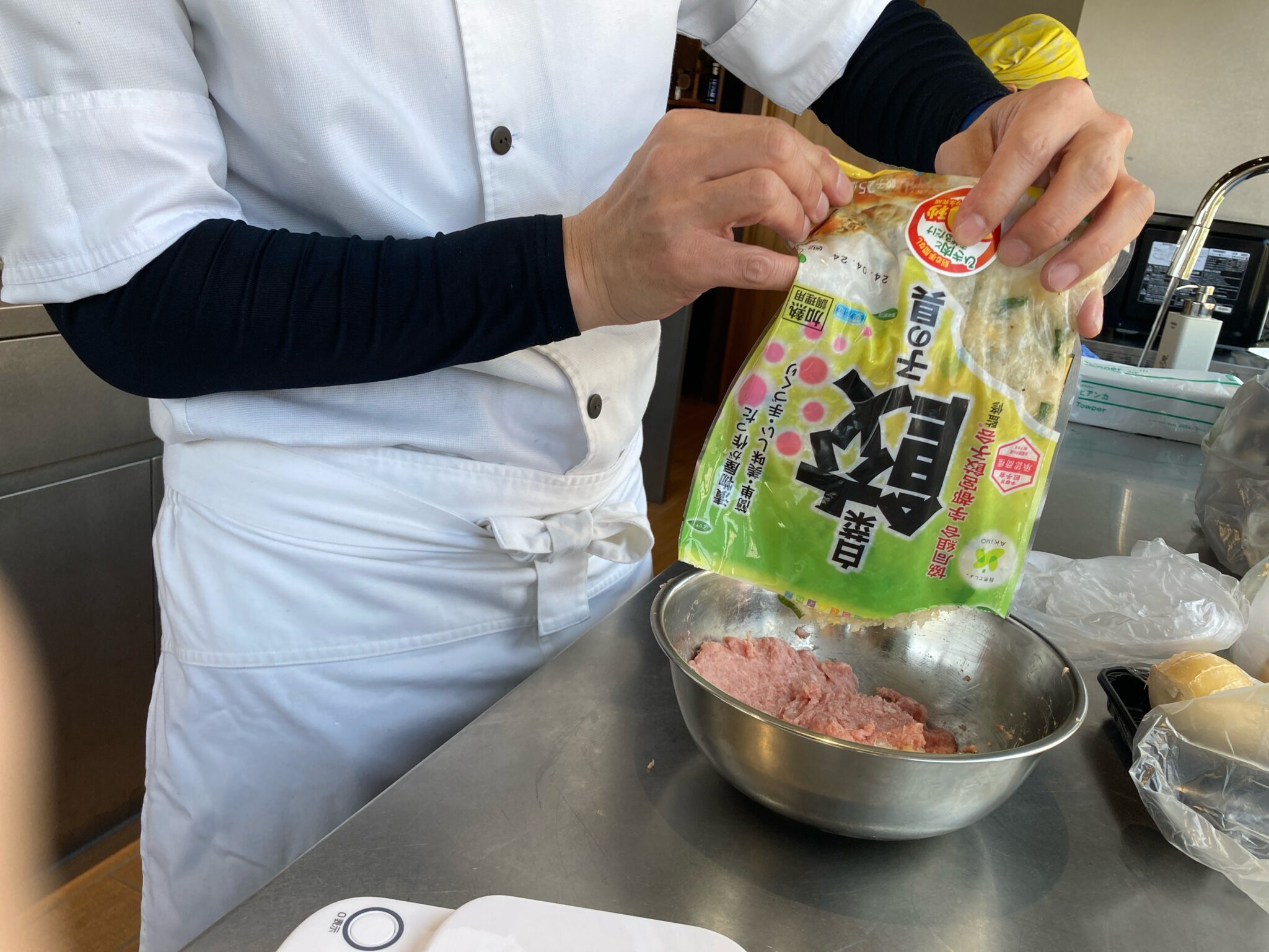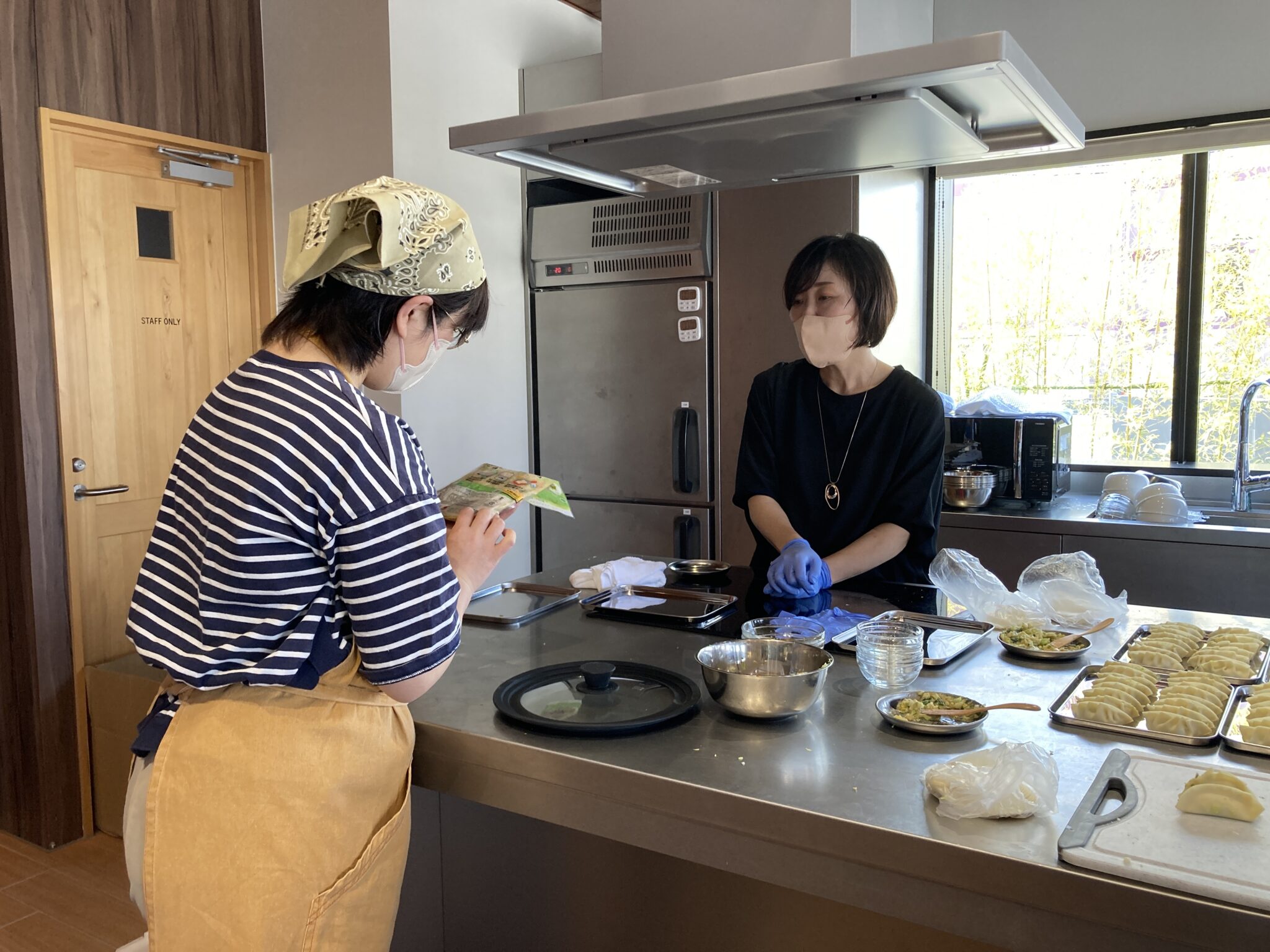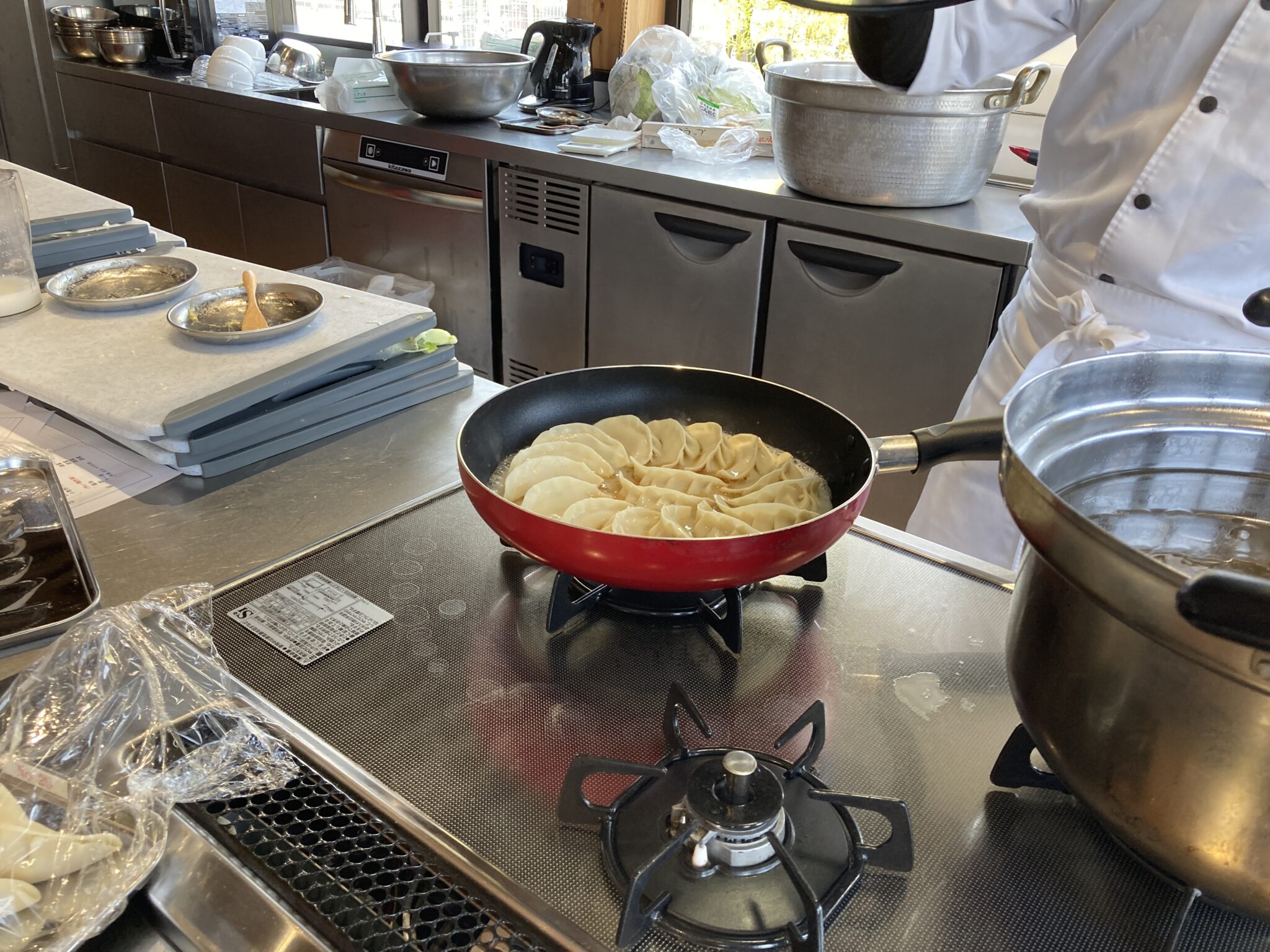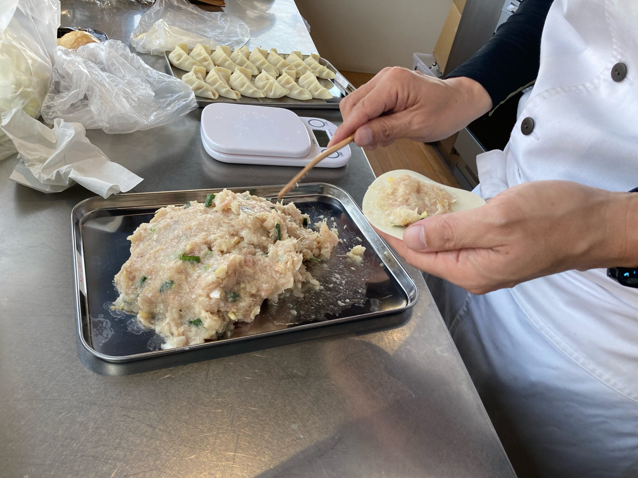 皆で野菜をカットしたあとは、肉を練り上げるポイントから皮のつつみ方まで、餃子づくりの極意をプロから丁寧に優しく教えていただき、ご参加されていた皆さんは笑顔で調理されていました。
