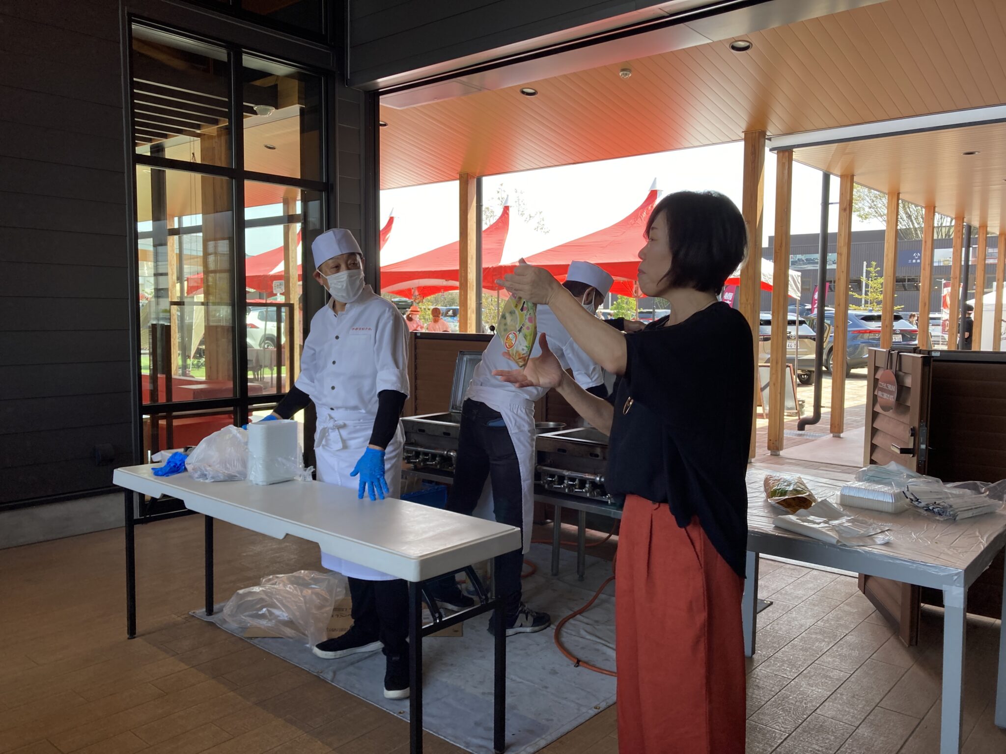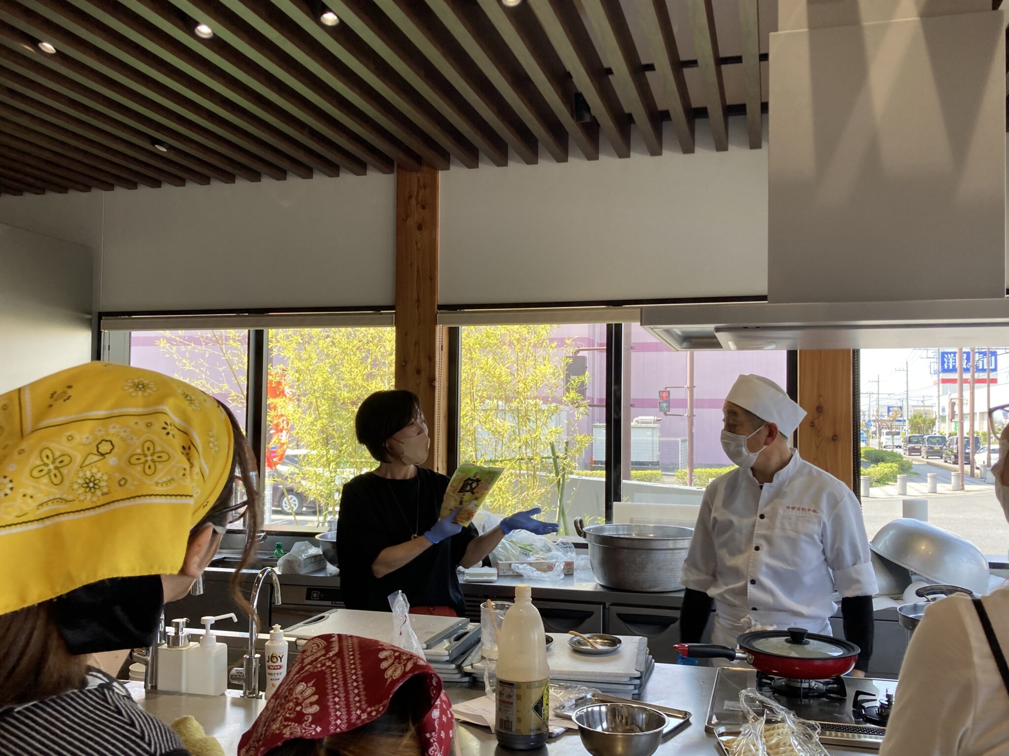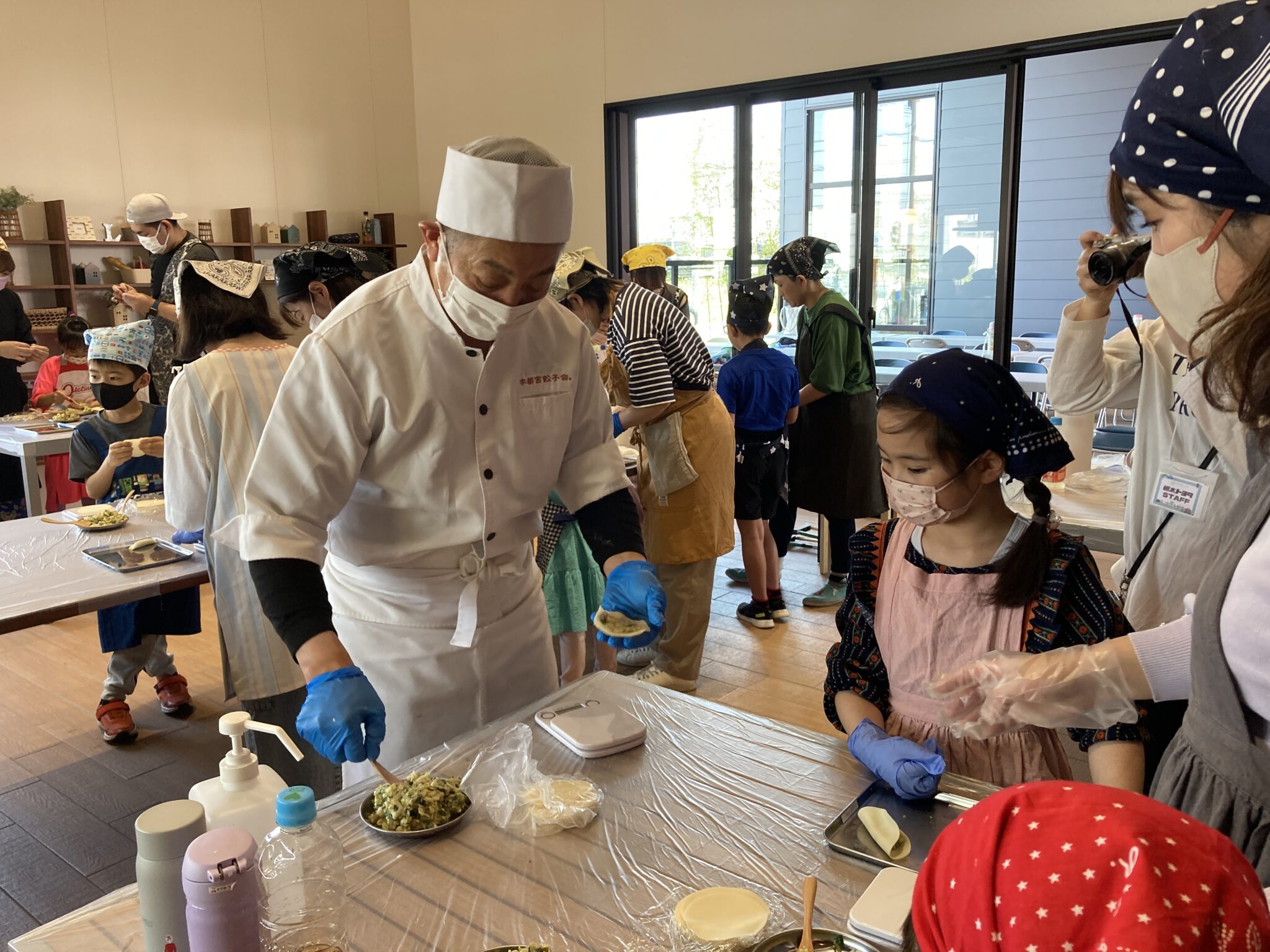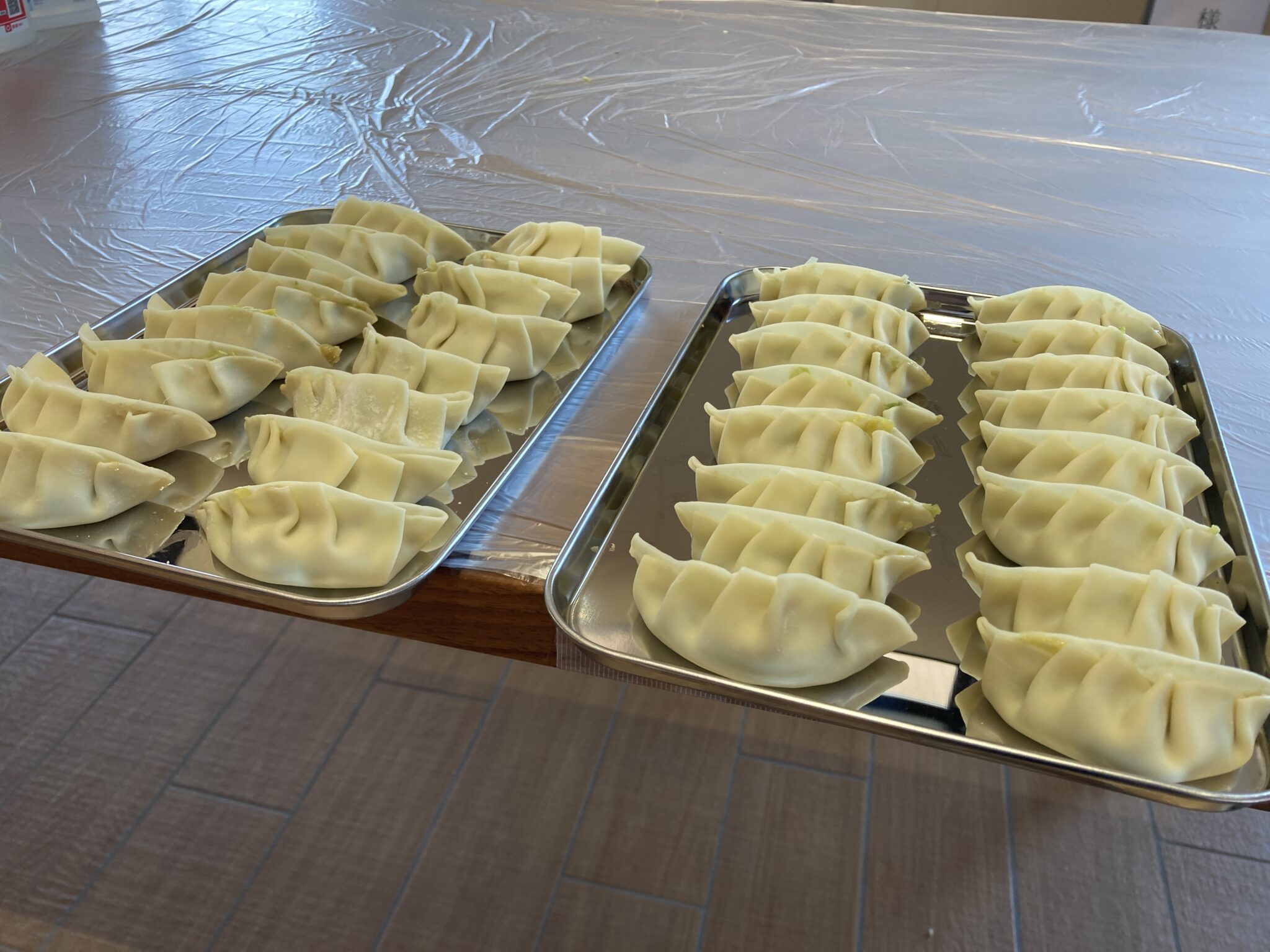 皆で野菜をカットしたあとは、肉を練り上げるポイントから皮のつつみ方まで、餃子づくりの極意をプロから丁寧に優しく教えていただき、ご参加されていた皆さんは笑顔で調理されていました。