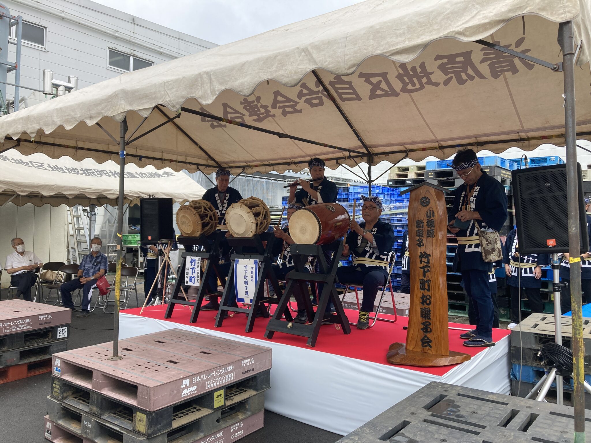 天気予報は午前中雨天の予定でしたが、開催直前には雨があがり、この時期らしい穏やかな曇天となりました。竹下町お囃子会の豊かな音色のお囃子から始まった本イベントは、「美味しく食べて楽しくお買い物のマルシェスタイル」がテーマ。総合司会は今年もDJ Kei氏にお願いし、あじさい祭り実行委員長の和氣と共に会場内を練り歩き、飲食メニューや提供する人、販売商品などについての魅力を存分に伝え、盛り上げていただきました。