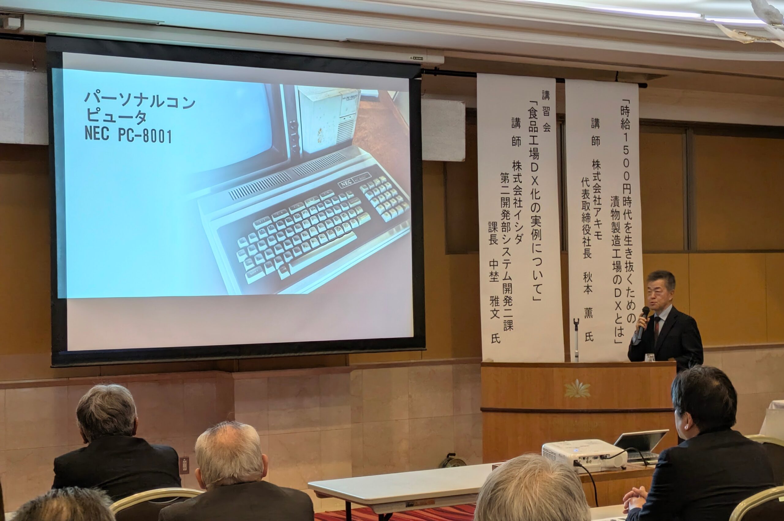 2026年1月20日(火)、長野県漬物協同組合が主催された「令和7年度漬物技術講習会」にて、当社社長秋本による講演を実施いたしました。当日は、ご来場いただいた皆様に『時給1500円時代を生き抜くための、漬物製造工場のDXとは』と題し、当社浅漬け製造工場のDX化の取り組みについてお話いたしました。