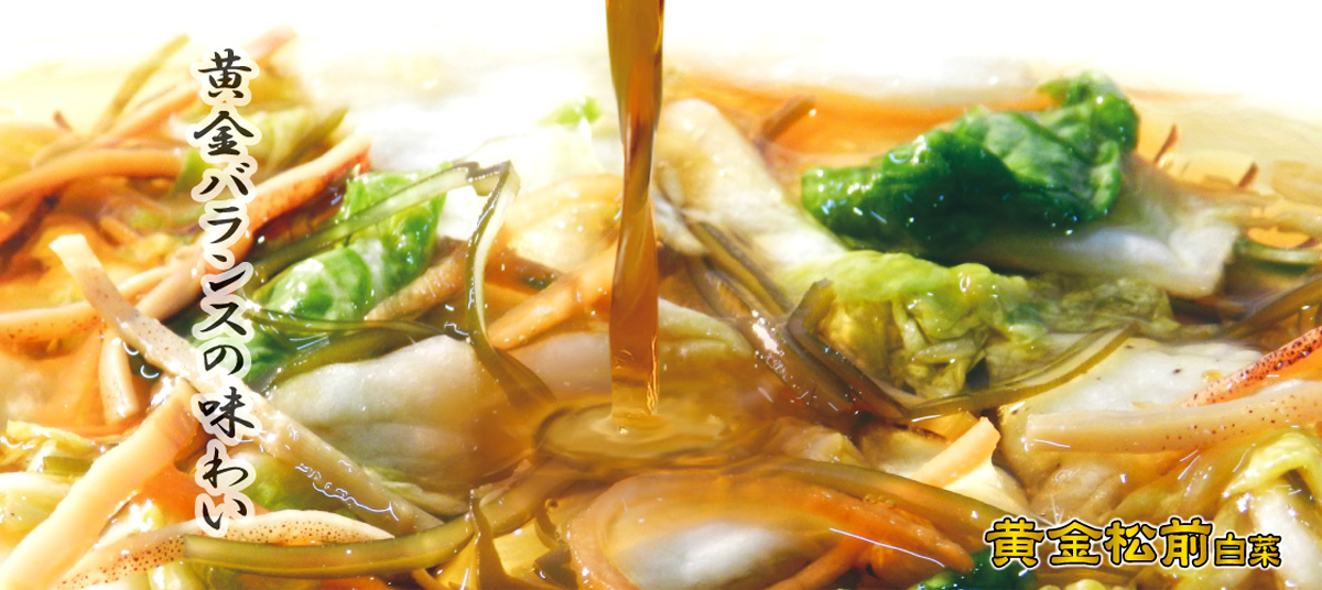 国産白菜に北海道産昆布といかを合わせ、かつおエキスと二種の醤油を使用して黄金バランスの味に仕上げています。