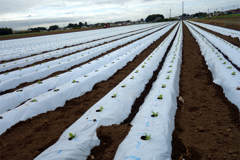 2020年9月1日(火)、苗を植えたばかりの白菜圃場。